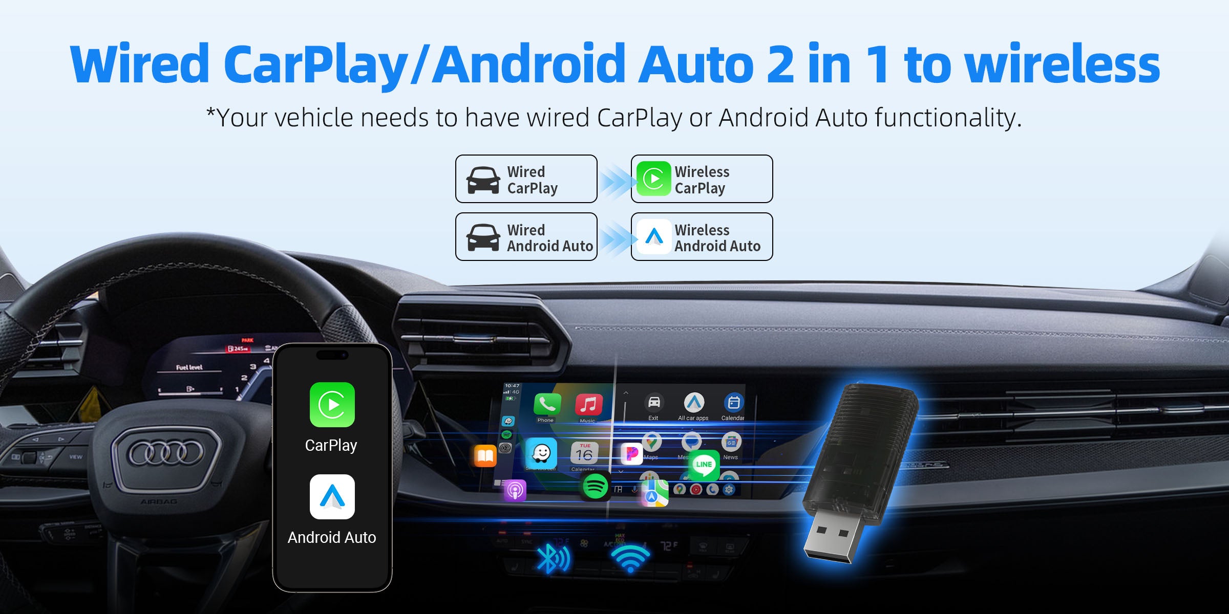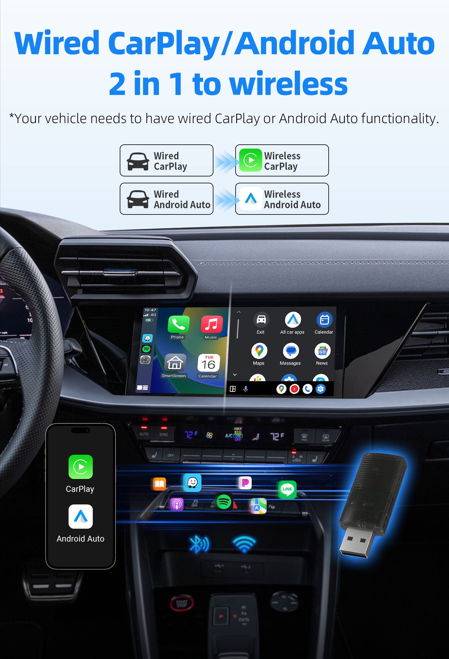 Mini Wireless CarPlay/Android Auto 2 in 1 Adapter